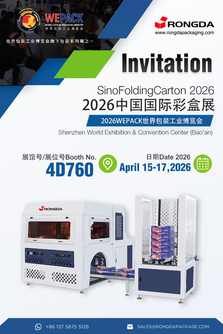 Wenzhou Rongda Packaging Machinery Co., Ltd. είναι στην ευχάριστη θέση να ανακοινώσει τη συμμετοχή της στο China International SinoFoldingCarton 2026 2026, που πραγματοποιείται από15 Απριλίου έως 17 Απριλίου 2026, στο Παγκόσμιο Εκθεσιακό & Συνεδριακό Κέντρο Shenzhen (Baoένα).